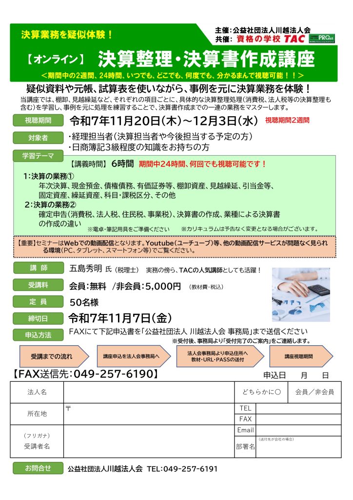 ※お申込みの際は、下記PDF(【オンライン】決算整理・決算書作成講座)を