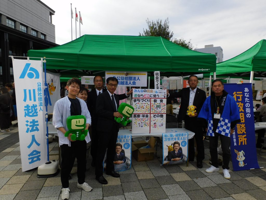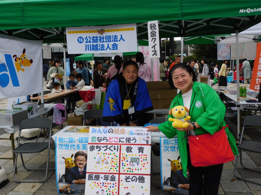 11月2日(日)ウェスタ川越のふれあい広場において、恒例の「県民ふれあいフェスタ」が開催されました。今年も川越法人会ではブースを設置して「税金クイズ」や「税に関するアンケート」を実施いたしました。