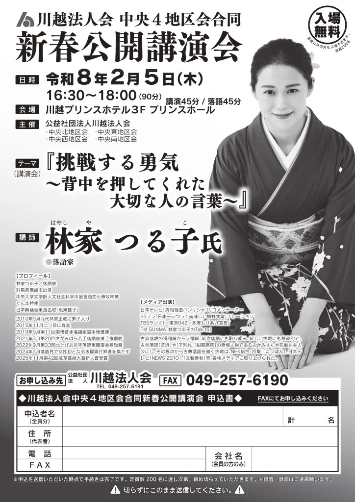 - 【2月5日開催】中央4地区会合同新春公開講演会(林家つる子氏)