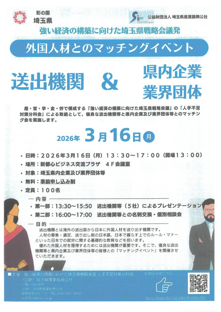 - 【埼玉県産業振興公社より】マッチングイベント開催のお知らせ
