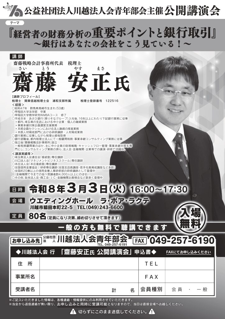 - 【3月3日開催】青年部会公開講演会(齋藤安正氏)